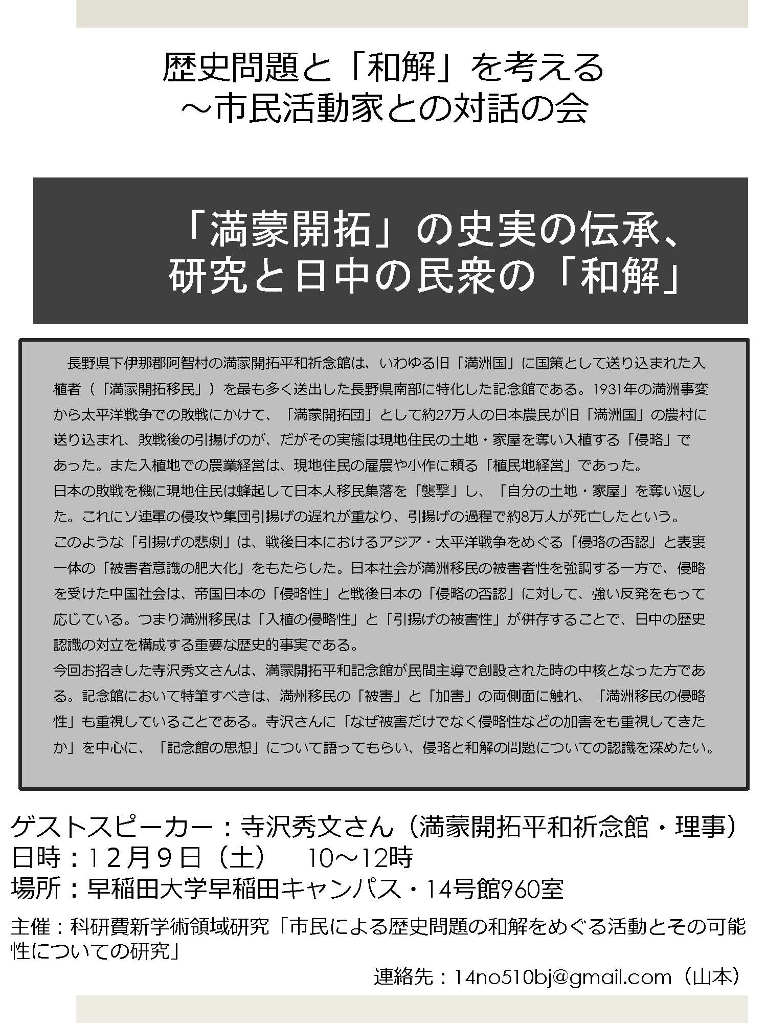 インフォメーション(和解のための現代日本学)